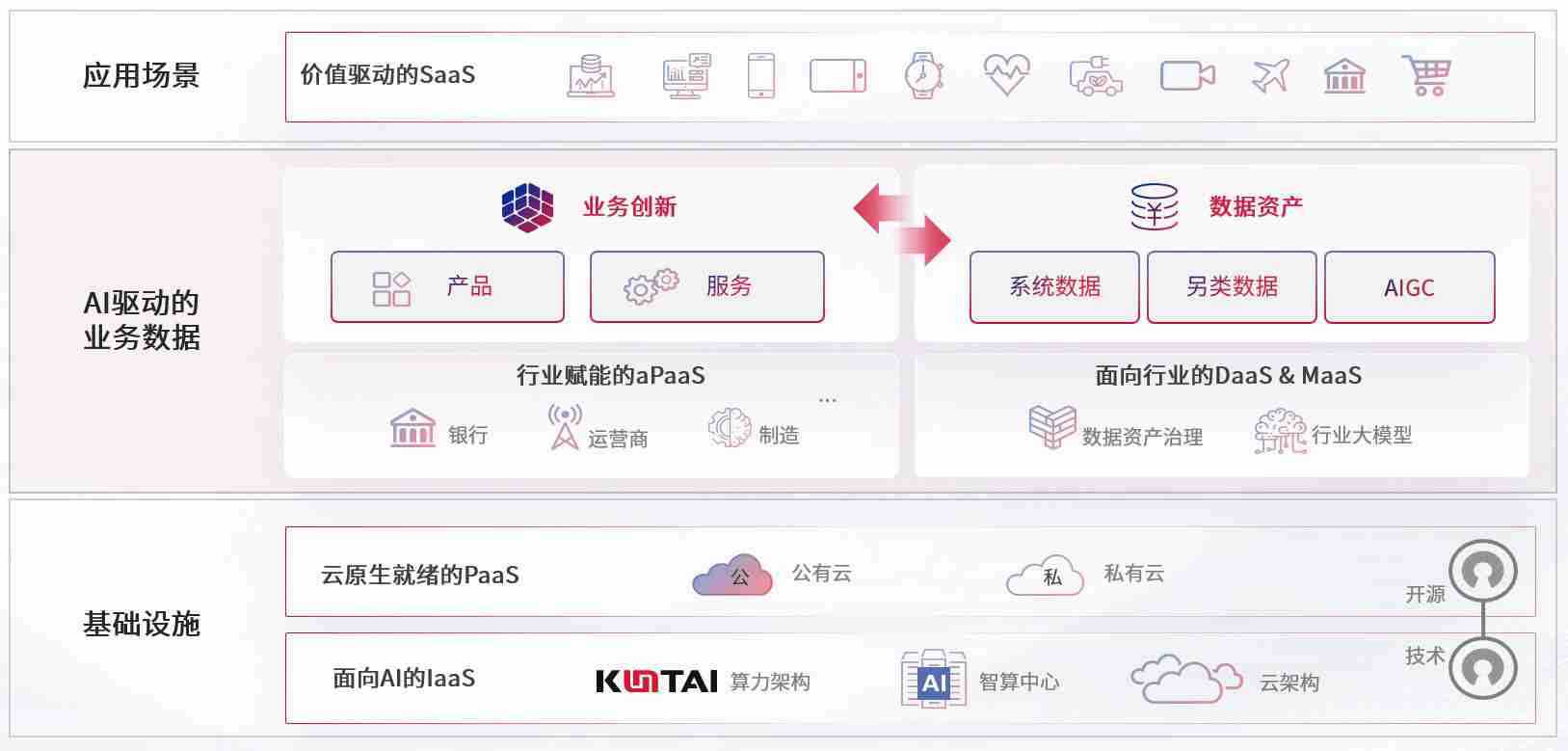 数字时代,,,,围绕企业数字化转型的关键要素,,,,第一娱乐数码开创性的提出数云融合战略和技术体系框架,,,着力在云原生、、、数字原生、、AI原生和信创产业上架构产品和服务能力,,,,为处在不同数字化转型阶段的快消零售、、汽车、、、金融、、、、医疗、、、政企、、、教育、、、、运营商等行业客户提供泛在的敏捷IT能力和融合的数据驱动能力,,,,构建跨界融合创新的数字业务场景和新业务模式,,助力企业级客户建立面向未来的核心能力和竞争优势,,,,全面推动社会的数字化、、、智能化转型升级。。